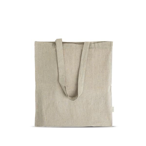 Torba z melange’owej bawełny z recyklingu o gramaturze 150 g/m². Wykonana w 100% z bawełny z recyklingu, pochodzącej ze ścinków poprodukcyjnych (pre-consumer). W trakcie produkcji odzieży pozostałe fragmenty tkanin są ponownie wykorzystywane do stworzenia nowego, trwałego materiału o naturalnie jasnym odcieniu. Torba o wymiarach 38 × 42 cm łączy w sobie zrównoważone podejście, jakość i prostotę w uniwersalnym designie, idealnym do codziennego użytku. To ekologiczny wybór, który daje tekstyliom drugie życie i pomaga ograniczać ilość odpadów.