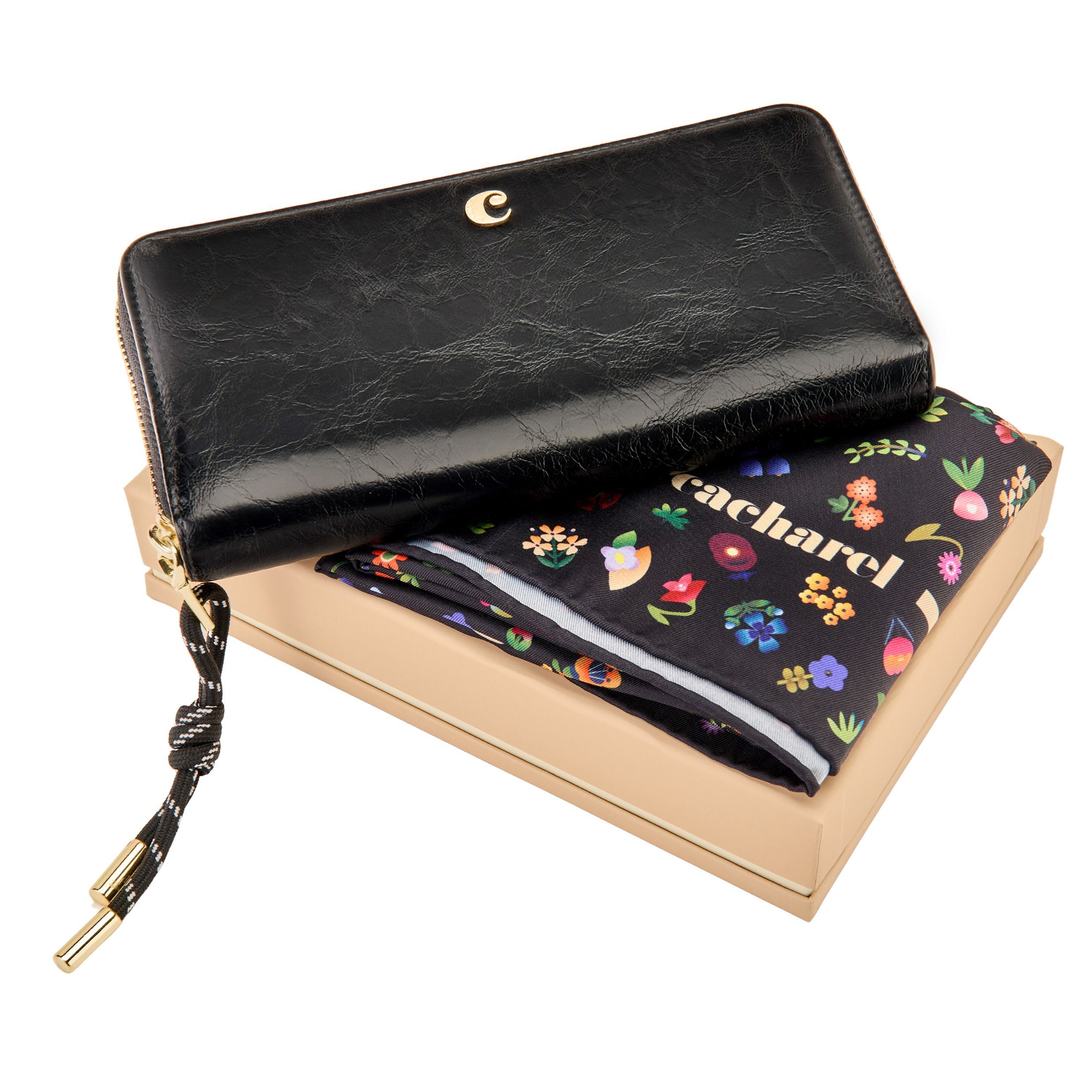 Zestaw Cacharel Czarny (portmonetka podróżna i szal)