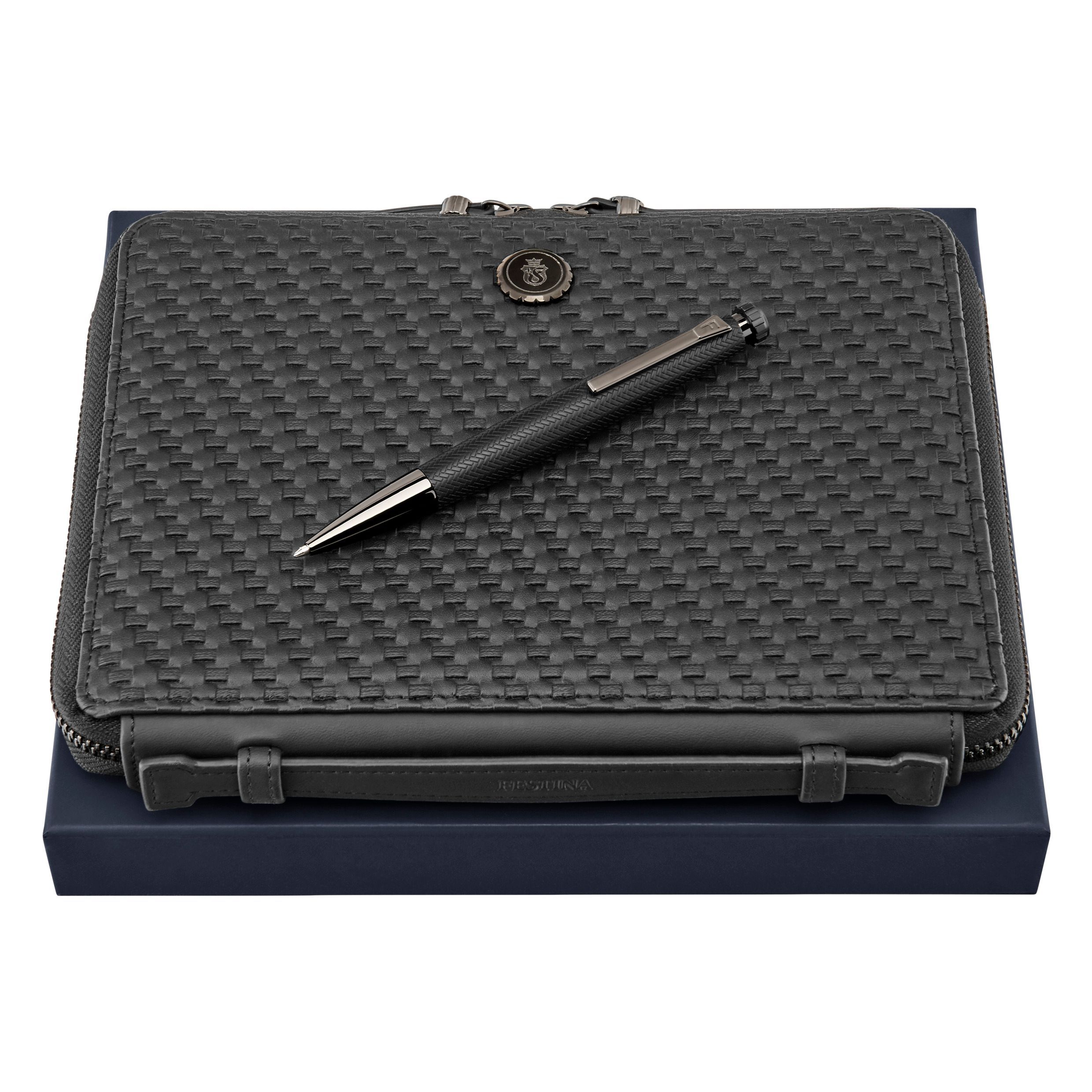 Zestaw Interlace Czarny (długopis i teczka konferencyjna A5)