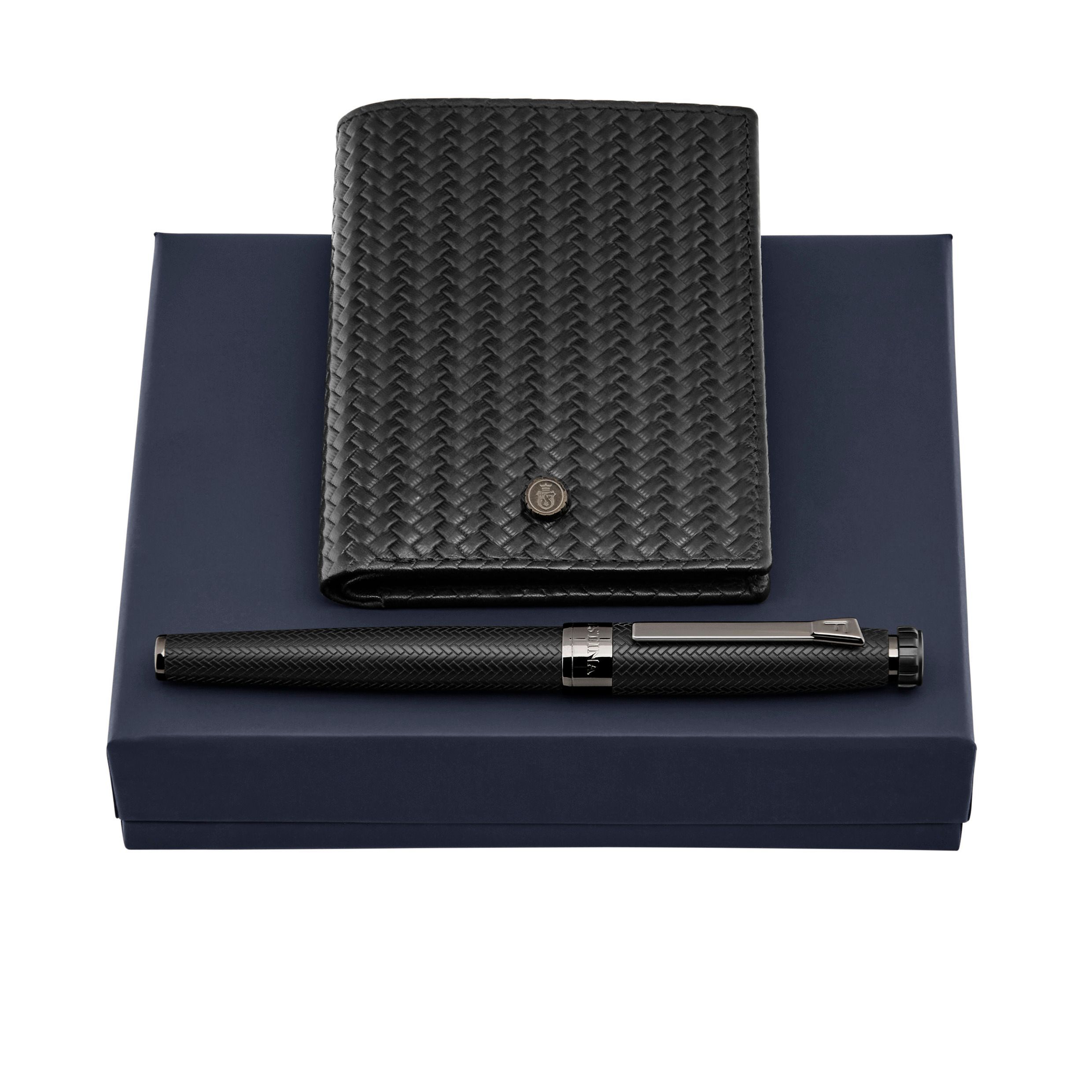 Zestaw Interlace Czarny (pióro wieczne i etui na karty)