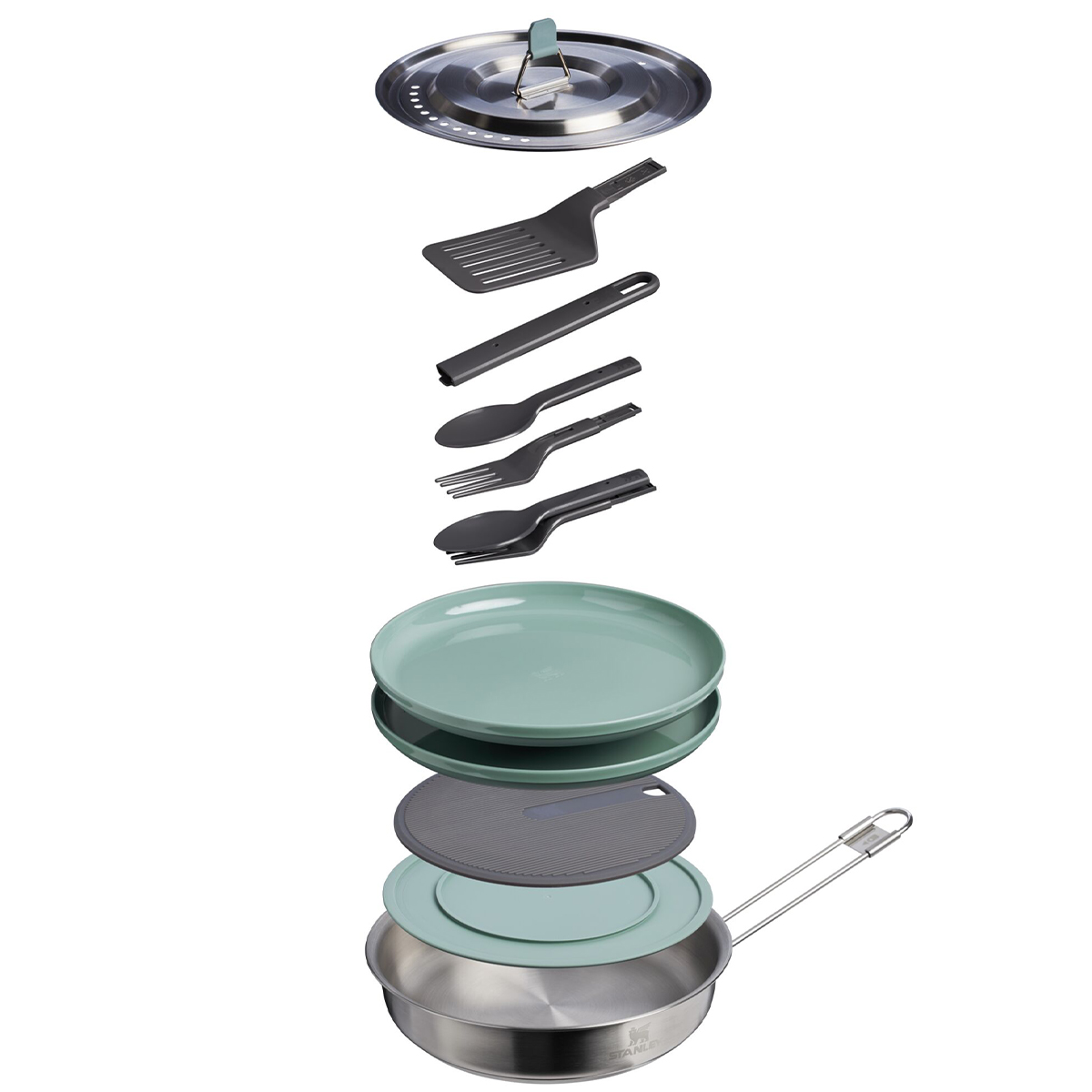 Gotowanie na świeżym powietrzu nie musi być skomplikowane. Wytrzymała kolekcja Wildfare Core zapewnia wszystko, czego potrzeba do udanego posiłku. Od kempingów po pikniki, stwórz kuchnię na świeżym powietrzu, która ułatwi przygotowywanie posiłków, gotowanie i sprzątanie. Prosty i wydajny, 8-częściowy zestaw patelni Wildfare Core Fry Pan Cookset można łatwo spakować. Patelnia ze stali nierdzewnej o potrójnej warstwie sklejenia równomiernie rozprowadza ciepło, a pokrywka posiada otwory wentylacyjne i odpływowe. Zestaw składający się z 2 łopatek i 2 łyżek jest kompaktowy lub pełnowymiarowy. Antypoślizgowa deska do krojenia zapewnia miejsce do przygotowywania mięsa i warzyw, a zdejmowana silikonowa podstawka chroni powierzchnie przed gorącymi patelniami. Kolorowe talerze dopełniają zestaw, umożliwiając gościom na świeżym powietrzu komfort domowego ogniska.
