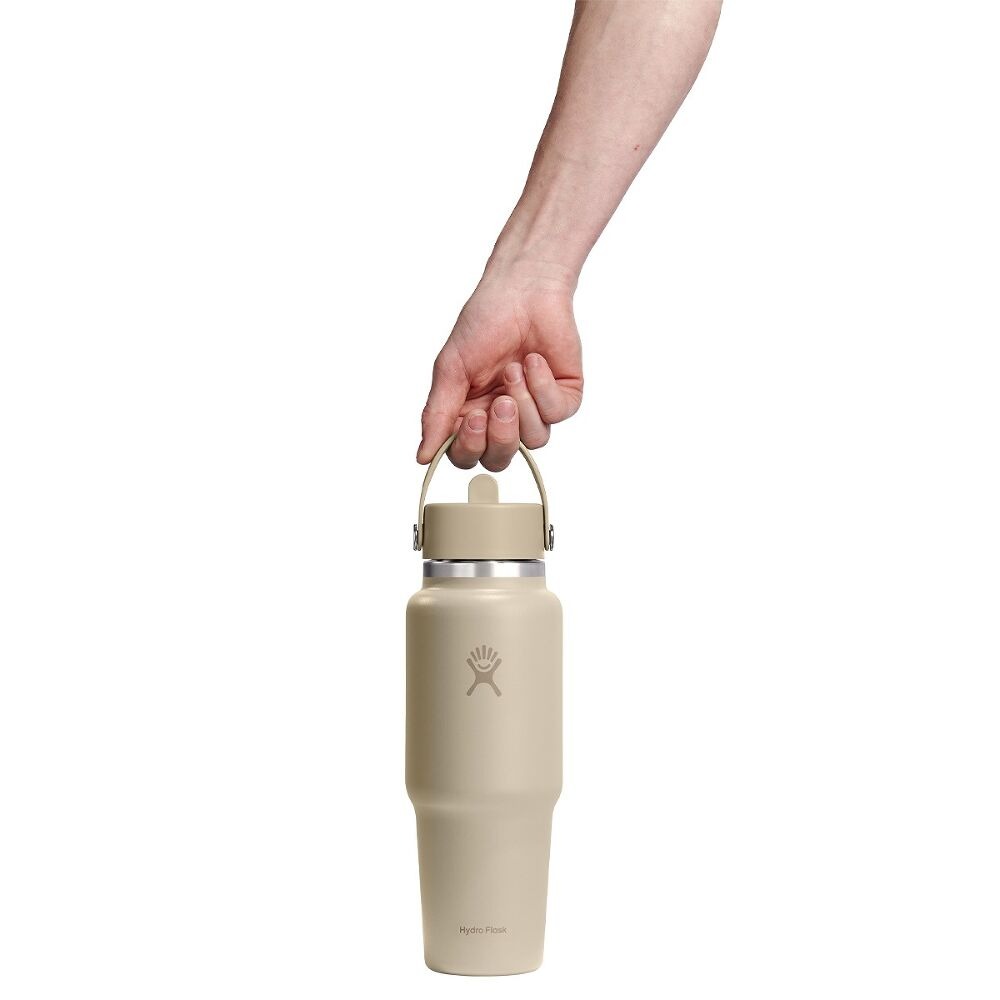Hydro Flask 946 ml Wide Mouth Travel Bottle z zakrętką Flex Straw Cap to izolowana butelka ze stali nierdzewnej zaprojektowana z myślą o wygodnym użytkowaniu w podróży i dopasowaniu do uchwytów na kubki. Podwójna izolacja próżniowa pomaga utrzymać napoje zimne przez wiele godzin. Szczelna zakrętka Flex Straw Cap umożliwia wygodne picie w ruchu, a szeroki otwór mieści kostki lodu i ułatwia napełnianie oraz czyszczenie. Butelkę można myć w zmywarce.• trwałe materiały wysokiej jakości• kompatybilność z produktami Hydro Flask• wygodne użytkowanie• łatwe czyszczenie