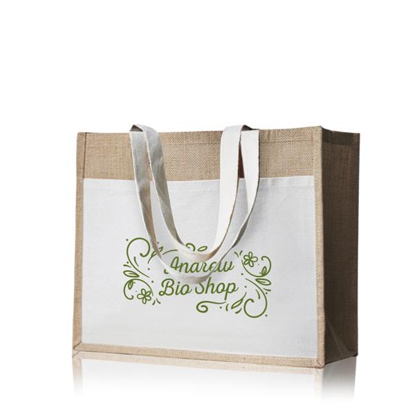 Torba z juty z kieszenią z bawełny 100%.