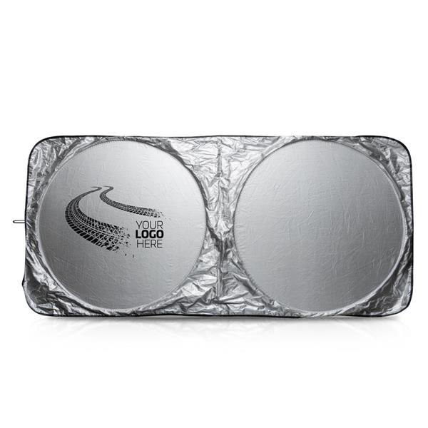 Składana osłonowa przeciwsłoneczna wykonana z poliestru. Zawiera etui. Aby Twój samochód nie został uszkodzony przez słońce, chroń jego wnętrze za pomocą osłony, która wyposażona jest w taśmę i etui ułatwiające użytkowanie oraz przechowywanie. Jest odpowiednia do szyby przedniej. Wymiary osłony to 155 x 70 cm
