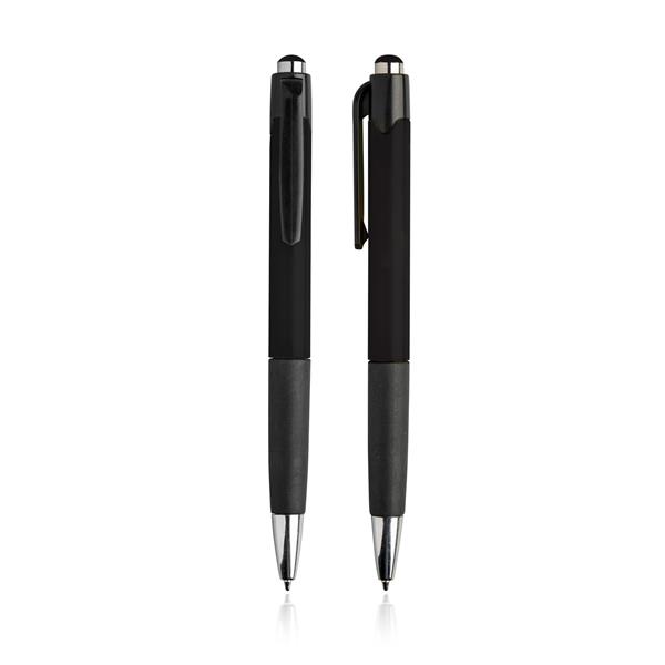 Plastikowy długopis z gumowanym uchwytem.