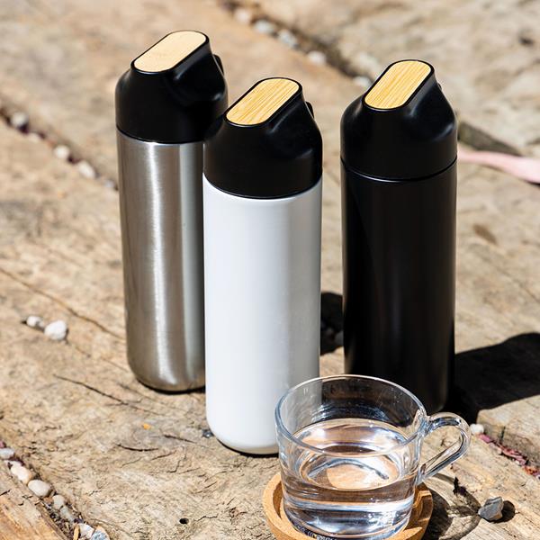 Butelka 600ml termiczna z bambusowym detalem / Drinko