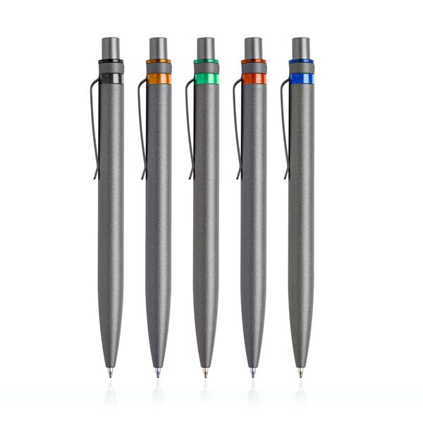 Aluminiowy długopis z kolorowym detalem. Wykonnay jest z materiałów poddanych recyklingowi, więc wybierając ten produkt wspierasz ograniczanie emisji CO2.