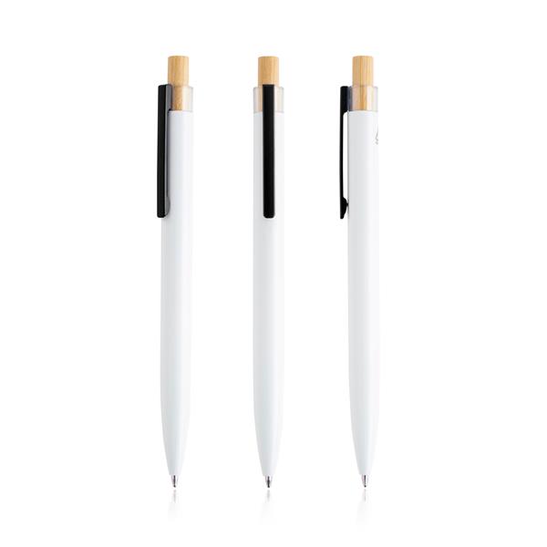 Długopis z recyklingowanego aluminium z detalami z bambusa. Wykonany z aluminium z recyklingu odpadów,wykorzystując procesy topienia i pozyskiwania. Kupując ten długopis, pomagasz zmniejszyć emisję dwutlenku węgla i ograniczyć odpady. Ten długopis z niebieskim wkładem sporograficznym posiada także klik z bambusa, podążając za trendami rynkowymi.