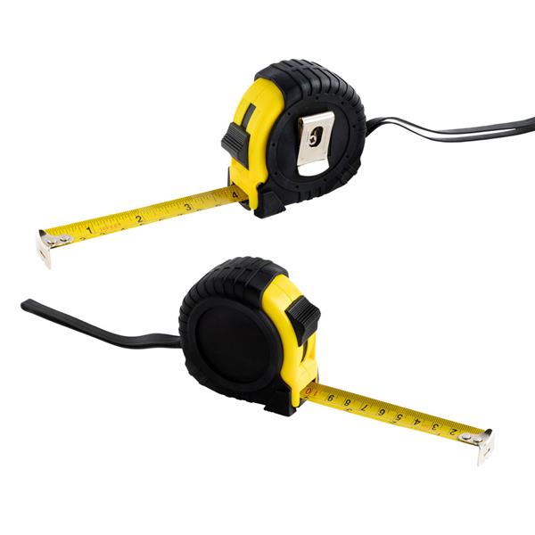 Plastikowa miarka o długości 5 metrów. Ta miarka z hamulcem i metalowym klipsem posiada dwie skale (centymetry i cale) oraz miejsce do personalizacji żywicą.