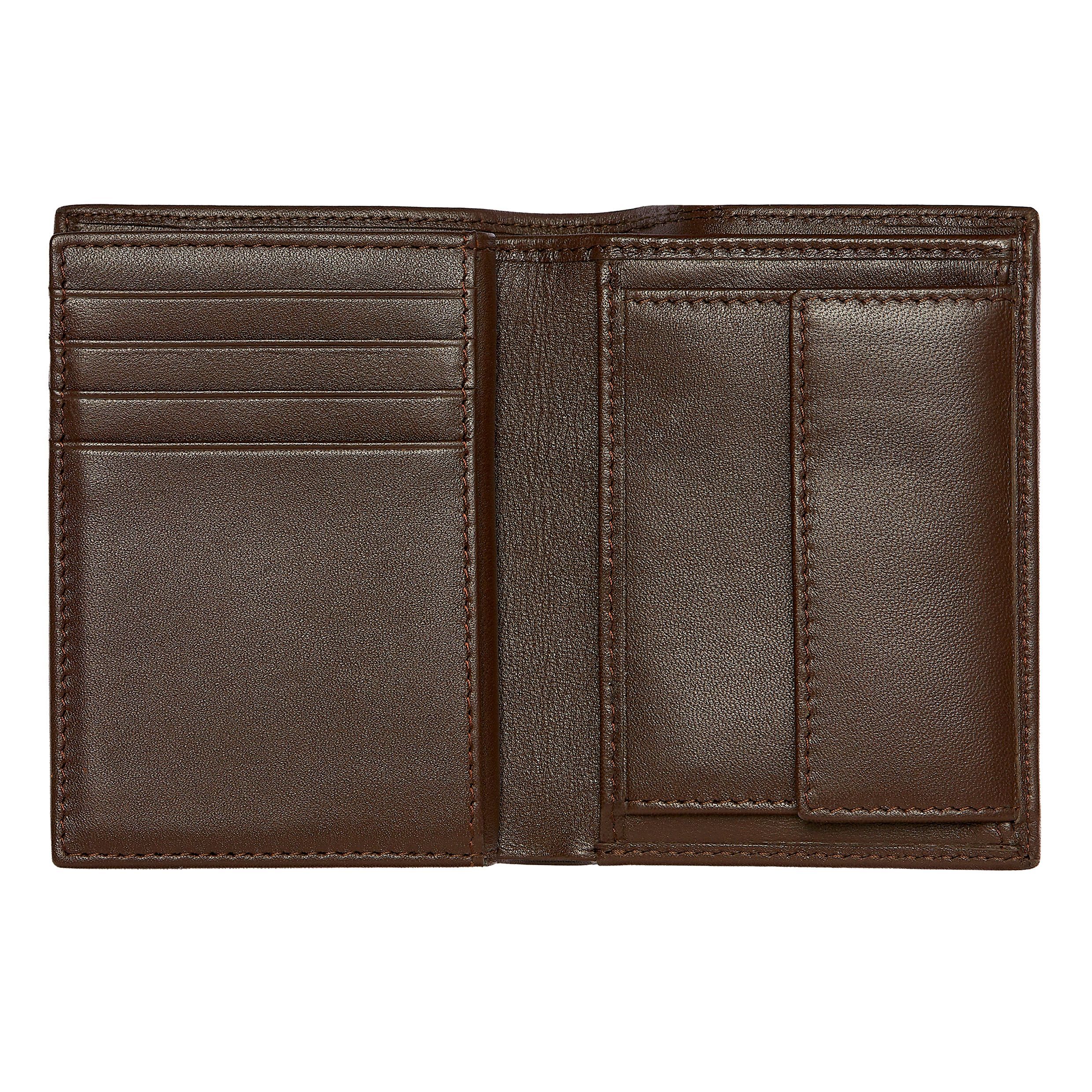 To etui na karty z klapką i saszetką na pieniądze jest wykonane ze starannie dobranej, najwyższej jakości brązowej gładkiej skóry. Jest sygnowane luksusową chromowaną tabliczką z podpisem BOSS i posiada wewnętrzną podszewkę z monogramem. Posiada : 2 przegrody na pieniądze 12 miejsc na karty 5 przegródek bocznych 1 miejsce na monety Zgodnie z DNA marki BOSS, jest prosty, funkcjonalny, elegancki i minimalistyczny.