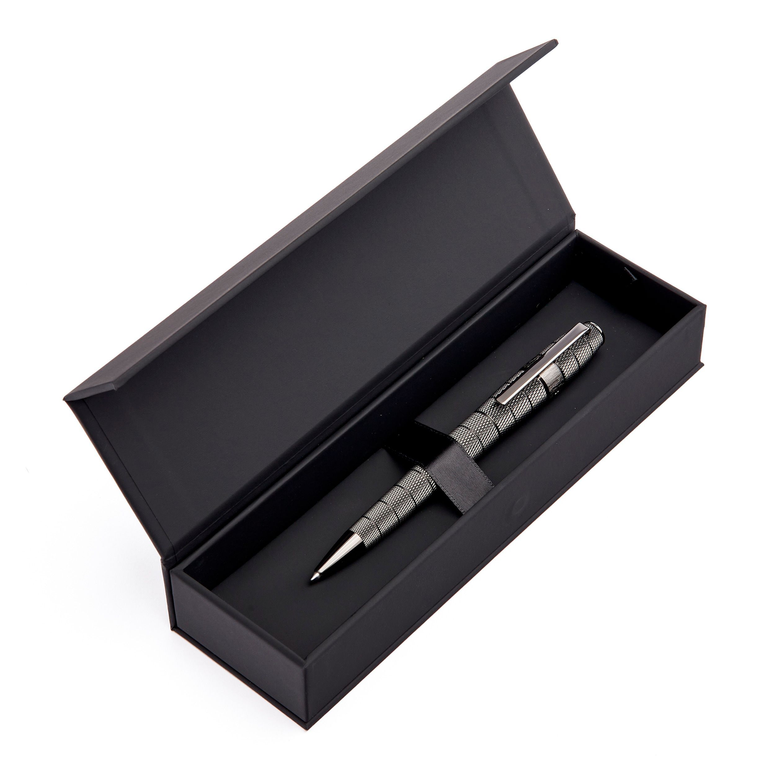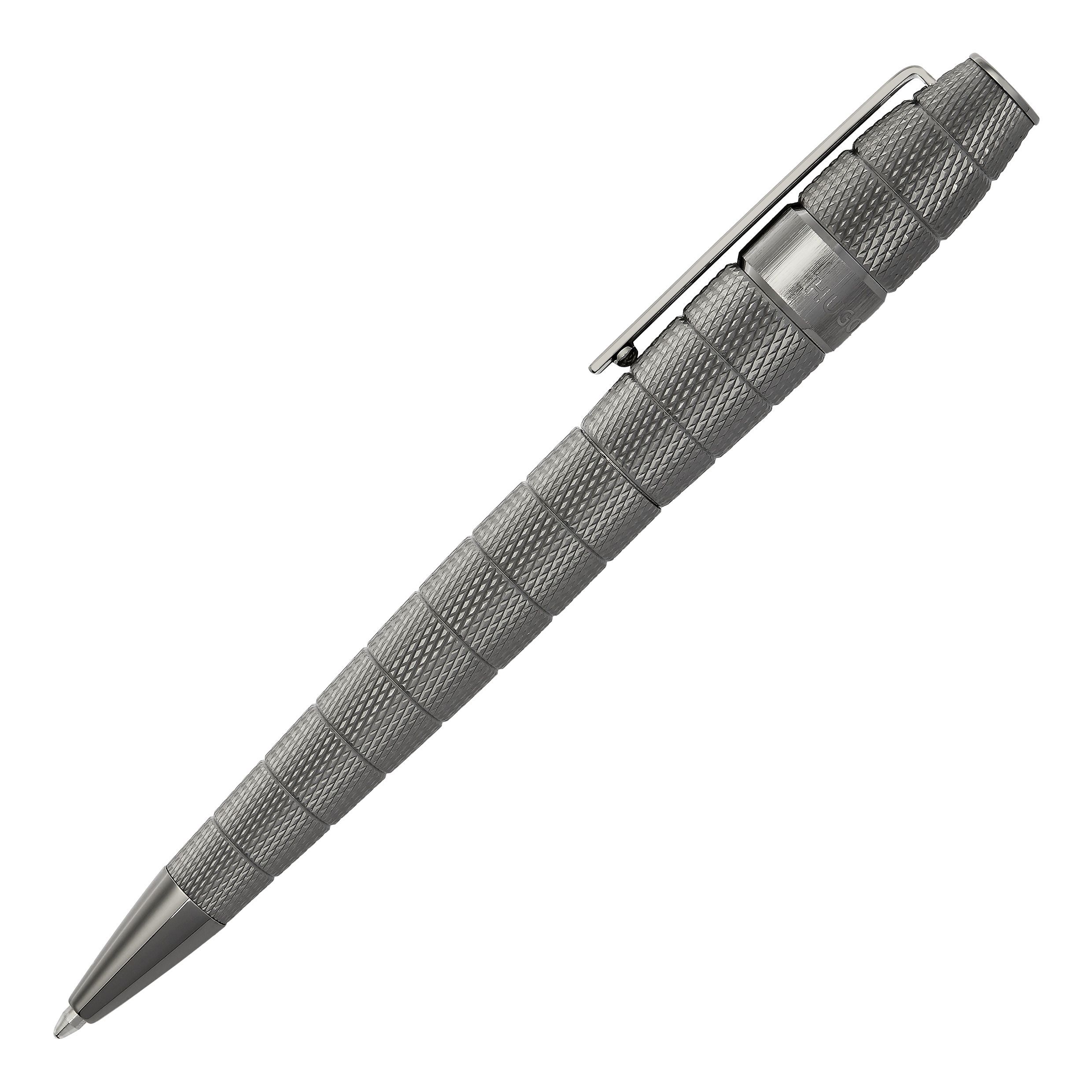 Ten wyważony, a jednocześnie mocny kształt zdobi głęboki, matowy, pokryty brązem grawerunek. Cała powierzchnia jest sekwencjonowana głębokimi, pionowymi smugami, zacierając podział między górnymi i dolnymi lufami, a przerywa je jedynie charakterystyczny, szczotkowany pierścień z logo. Rezultatem jest ultranowoczesne, wyjątkowe pióro.