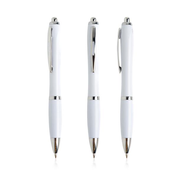 Długopis z PP pochodzącego z oceanu. Kupując ten długopis, pomagasz zmniejszyć ilość odpadów wynikających z braku ponownego użycia. Ten długopis piszący na niebiesko to klasyczny model z chromowanymi detalami.