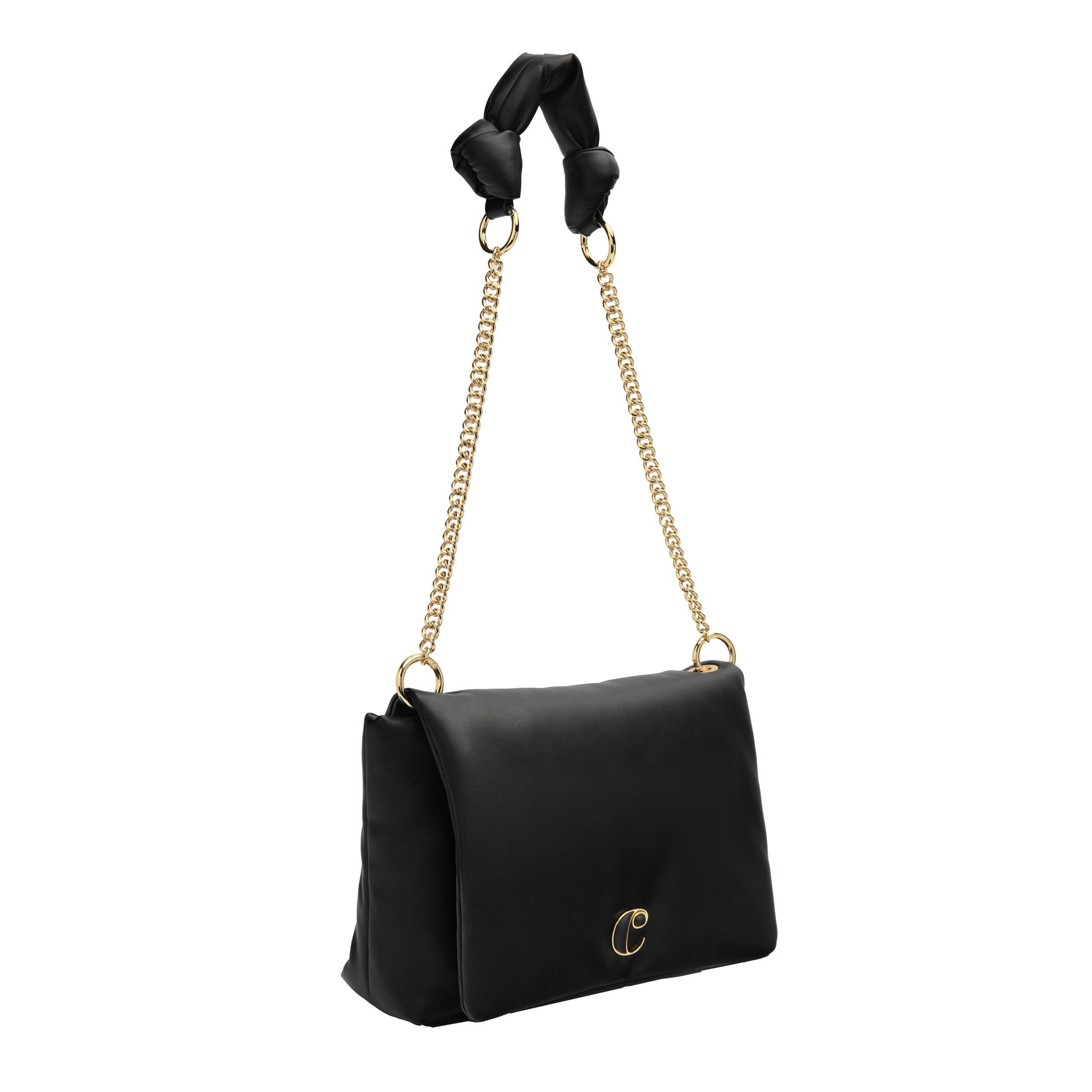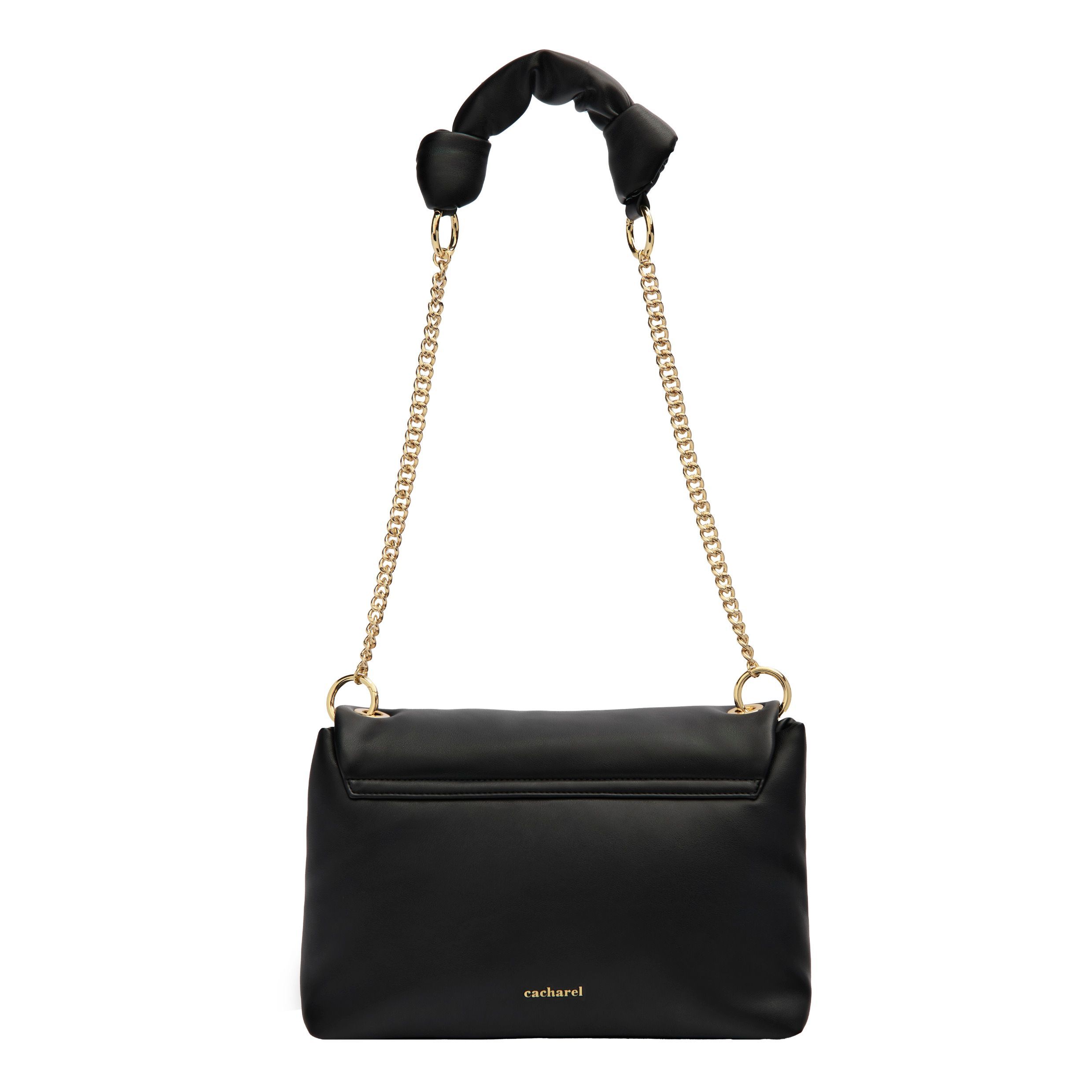 Torba "Vivienne" w kolorze czarnym to idealne połączenie miękkości i uroku, wykonane z wysokiej jakości, miękkiej, matowej skóry wegańskiej (PU) z efektem wyściełania, który podkreśla jej wyrafinowaną sylwetkę. Złote akcenty wnoszą ciepło i luksus do projektu, a złota tabliczka z logo "C" z czarnym wykończeniem ABS płynnie pasuje do korpusu torby, zapewniając dopracowany i spójny wygląd. Ta wersja posiada charakterystyczny pasek z elegancką kokardą i łańcuszkiem, oferując zabawny, ale wyrafinowany element. Subtelne logo Cacharel dopełnia jej ponadczasowy urok, a przestronne wnętrze sprawia, że idealnie nadaje się do codziennego użytku, łącząc praktyczność z elegancką estetyką.