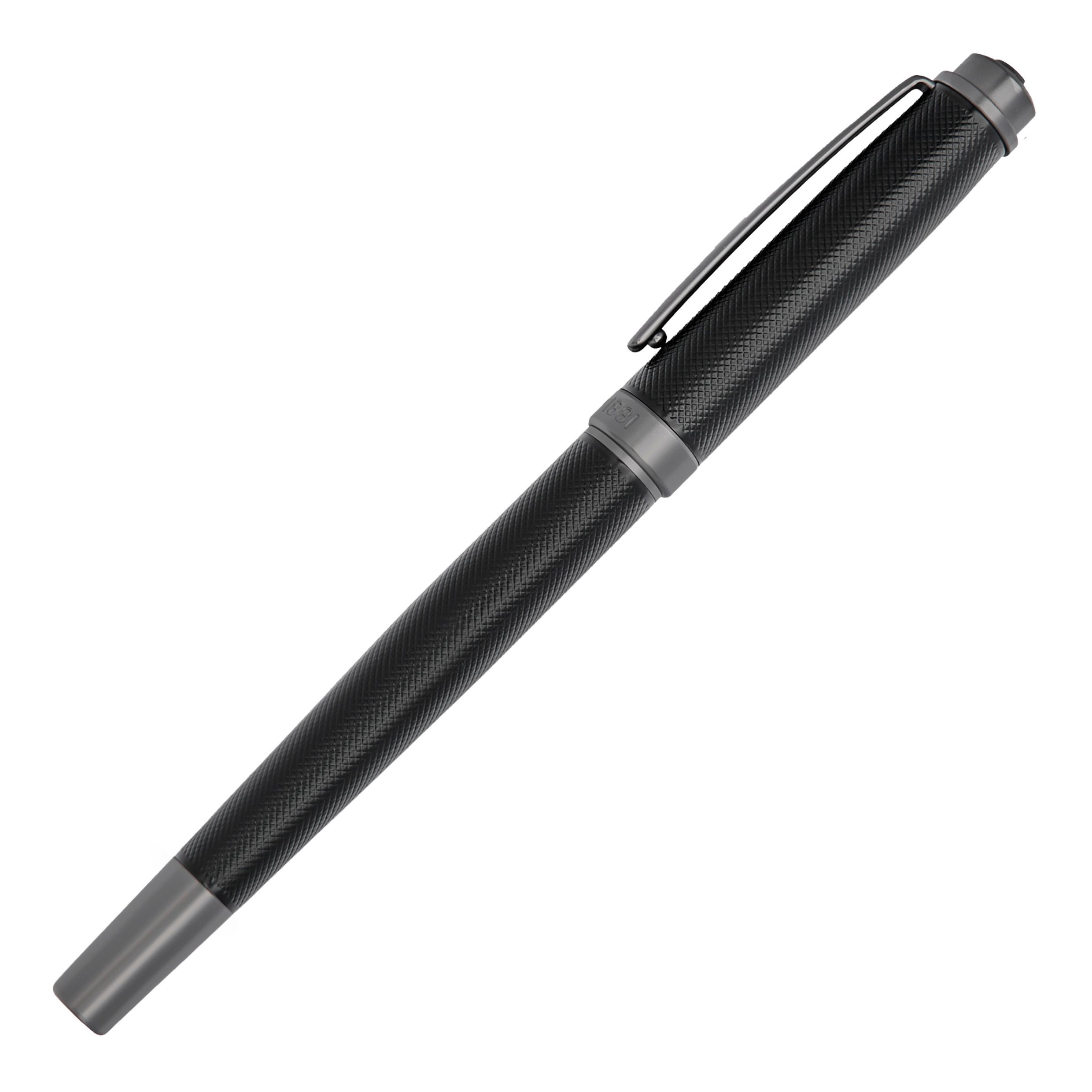 Pióro kulkowe "Belgravia" uosabia czyste wyrafinowanie Cerruti 1881, łącząc matowy, platerowany na czarno korpus z drobno grawerowaną powierzchnią. Podkreślony nowoczesnymi, matowymi, brązowymi wykończeniami, jego design jest wzbogacony kultowym logo CRR, pięknie wykonanym w 3D na górze. Luksusowo dyskretny i ponadczasowo nowoczesny, zapewnia płynne pisanie z niepowtarzalnym wyczuciem stylu.