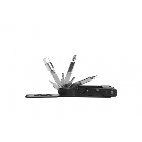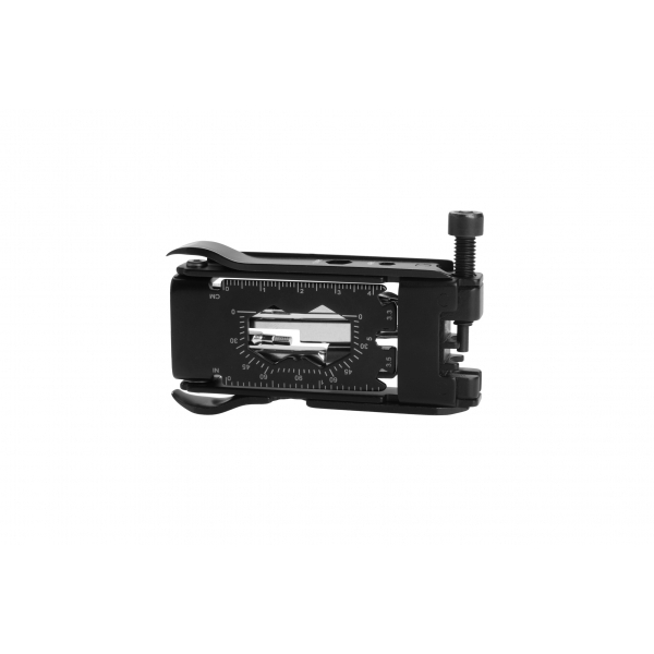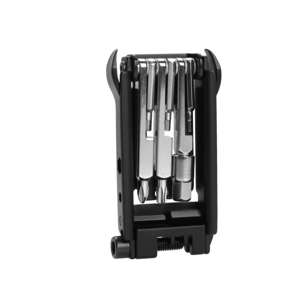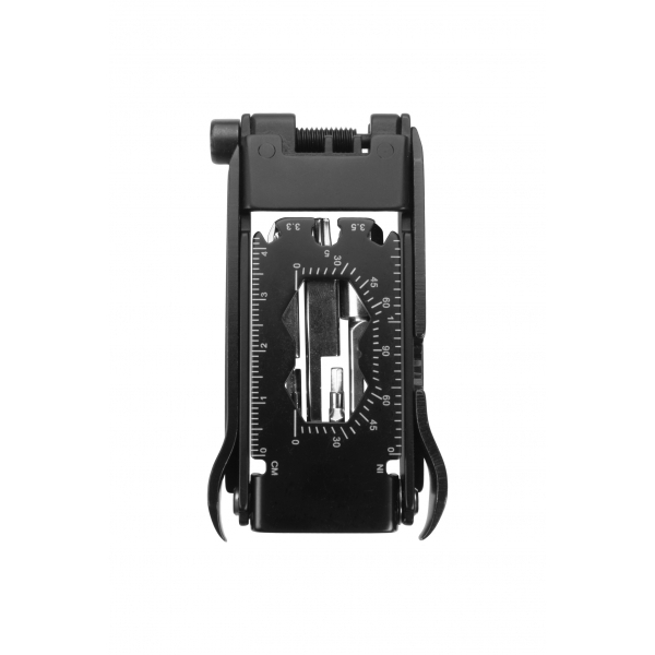 Wielofunkcyjne narzędzie dla rowerzystów. Zawiera 22 narzędzia: śrubokręt torx (3 rozmiary), otwieracz do butelek, śrubokręt płaski, śrubokręt krzyżakowy, 2 łyżki do opon, młotek do łańcuszka, klucz imbusowy (2 rozmiary), narzędzie do szprych (2 rozmiary), 2 linijki, klucz imbusowy (7 rozmiarów).